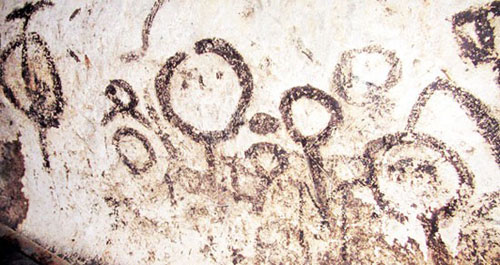 În primul grup intră siluete bitriunghiulare cu brațele deasupra capului, arcași, reprezentări itifalice (cu lingamul în erecție), scene reprezentând uniuni sexuale, figuri antropomorfe redate schematic, din linii simple, unele reprezentate cu mâinile ridicate (uneori ca și cum ar dansa) și figuri fungiforme (cu formă de ciupercă).