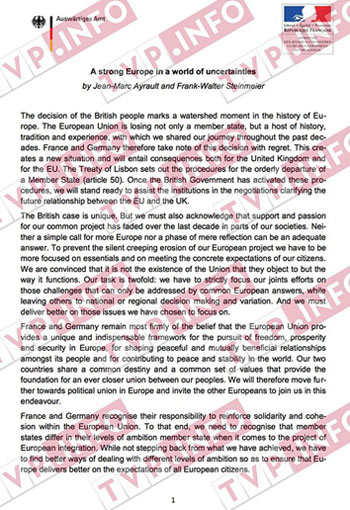 Documentul, care a fost publicat pe portalul de știri polonez TVP Info, are 9 pagini și este semnat de către miniștrii de externe ai Germaniei și ai Franței.