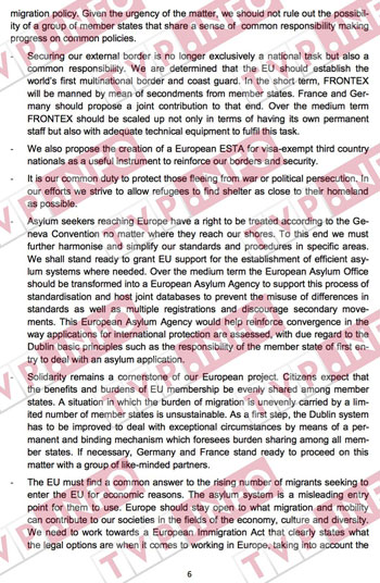 „Ţările noastre împart un destin comun şi acelaşi set de valori care dau naştere unor relaţii strânse între cetăţenii ţărilor noastre. Astfel vom lupta pentru o uniune politică în Europa şi îi invităm pe «următorii europeni» să participe în acest efort.”