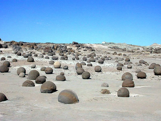 7. Valea Lunii sau Ischigualasto, care înseamnă „locul unde ai pus lună” este o vale din Argentina împânzită cu formaţiuni geologice generate de eroziuni eoliene. Una dintre principalele atracţii ale parcului este Câmpul Bowling – „Bowling Field” unde există un număr mare de sfere realizate dintr-un material asemănător solului a căror provenienţa nu a fost încă explicată.
