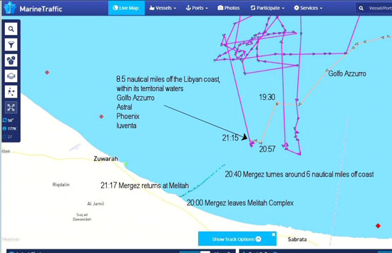 Garda de coastă italiană a direcționat ambarcațiunile spre apele teritoriale libiene, unde ele s-ar fi angajat în „operațiuni de salvare” și ar fi luat migranți la bord, pentru ca apoi să-i debarce pe coasta siciliană a Italiei. Acest lucru ar permite migranților să ocolească Malta, care este folosită ca un centru major de primire și sortarea a migranților și a refugiaților care intră în UE.