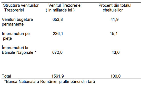 Pe de altă parte, examinând mijloacele prin care au fost acoperite cheltuielile bugetare totale ale Statului, se poate observa că mai puţin de jumătate din aceste cheltuieli au fost acoperite din încasări fiscale şi alte venituri permanente, în timp ce restul au fost acoperite prin împrumuturi şi alte mijloace ale Trezoreriei, şi în special prin noi emiteri de bancnote de către Banca Naţională.