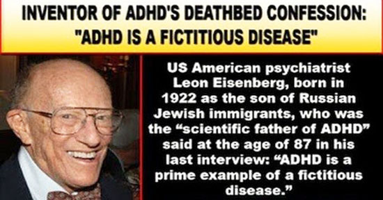 If ever there’s a case of psychiatry and Big Pharma rearing its ugly head, it’s in the way of disease mongering through inventing fictitious mental diseases. ADHD (Attention Deficit Hyperactivity Disorder) is said to be a classic example. Just before he died, Leon Eisenberg, the originator of ADHD, confessed that it was a fictitious disease.