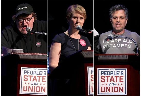 Ca o răzbunare rapidă împotriva președintelui Trump, se detaliază mai departe în raport, anumite forțe ale Statului din umbră care acționează prin intermediul comitetului de acțiune politică MoveOn.org (ce este finanțat de George Soros și care are coloratură comunistă), prin operațiunea de ucis copii Planned Parenthood și prin mega-sponsorul miliardar, adept de stânga al partidului democrat, Tom Steyer, au adunat în pripă toată oastea cea vestită a elitelor de top ale Americii, incluzând chiar anumite staruri de la Hollywood, precum și artiști muzicieni și au încropit o adunare radicală, pe care au numit-o People’s State of the Union, în cadrul căreia au decis și au votat să distrugă Statele Unite prin înscăunarea unei conduceri bazată pe genocid: