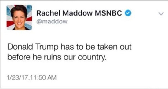 Principala „purtătoare de cuvânt” a Statului din umbră, Rachel Maddow de la postul de televiziune MSNBC, pledează pentru îndepărtarea de la putere a președintelui Trump