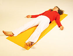 Lay down on a mat or on a blanket on the floor with your head towards the South (!) in a well ventilated room. Abandon your body on the floor. The hands are slightly apart from your body, the palms are facing upwards. The legs are slightly apart from each other. Become aware of your body and of the floor.