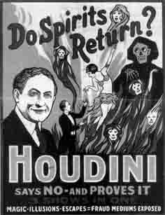 Să presupunem că o persoană cu capacităţi paranormale realizează ceva extraordinar şi inexplicabil. Şi ce dacă? Houdini poate face acel lucru chiar mai bine – dar o face folosind un şiretlic. Mâna este mai rapidă decât ochiul. Miracolele care au existat în toate timpurile nu sunt altceva decât nişte bieţi iepuri ieşiţi dintr-o pălărie goală. Dar pentru aceşti savanţi bigoţi există, din păcate, o serie de incidente legate chiar de viaţa personală a lui Houdini ce nu pot fi explicate atât de simplu. El pretindea faptul că toate isprăvile sale erau realizate prin simple şiretlicuri lipsite de originalitate. Poate că multe dintre ele aşa şi erau. Totuşi au rămas câteva semne de întrebare.
