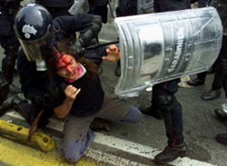 În declaraţia de constituire G8 se autodefineşte drept “un forum informal care ia în discuţie marile probleme economice si financiare ale lumii, apărător al unei societăţi deschise, democratice, profund ataşat de libertatea individuală şi progresul social”. Multe dintre acestea sunt doar nişte vorbe goale: mărturie stau violenţele la care recurg forţele de ordine doar pentru a preîntâmpina eventuale violenţe ale manifestanţilor – după acelaşi principiu al „războiului preventiv” practicat acum de SUA. Rezultatele se pot vedea: bătăi de stradă soldate cu răniţi şi uneori morţi, urmate de acuzaţii reciproce legate de cine a început. Şi un număr tot mai mare de protestatari.