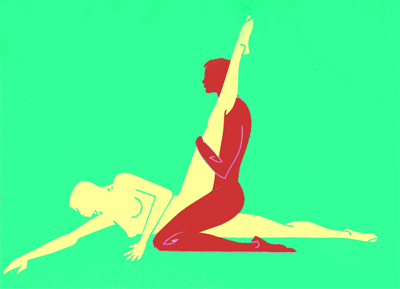 If they want to perform this posture without the alternative movements, she keeps only one of her legs raised; they will be able to approach a variant of this posture. Thus, the woman, with a considerable flexibility, can stretch out on one side, having one of the legs still raised (which she will set on his shoulder analog to her leg – in our case his lover’s left calf supports on his left shoulder), while he comes in at an angle perpendicular to her (she being turned with her back to her lover), above the lower thigh of his lover (in our example, the right thigh). This new posture is called “the leg suspending posture” or “the square rule”.