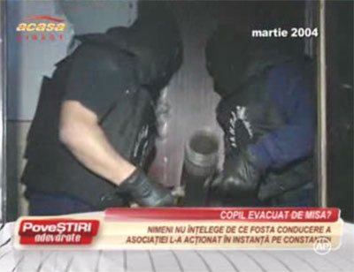 Oricum, să ne întoarcem un pic la povestea relatată de Acasă TV. Ce aflăm când analizăm reportajul din 9 februarie? Că omul cu copilul bolnav urmează să fie evacuat, deducem, pentru că fosta preşedintă a asociaţiei de locatari este acum funcţionară la Primărie şi nu-i are la inimă pe locatarii din demisol. Şi alţi locatari sunt în proces cu ea, deci femeia este clar personajul negativ. Se insinuează că aceasta ar vrea să dea boxa celor de la MISA şi că de aceea vor fi evacuaţi sărmanii şi mai ales copilul, care are o boală extrem de rară. Şi se arată imagini de la descinderile din martie 2004. Nu pricepem nimic. De unde până unde şi care este legătura cu MISA care ar evacua copilul???