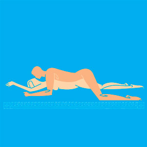 Femeia se va întinde cu faţa în jos şi, păstrând picioarele drepte, le va depărta uşor. Braţele le va întinde în prelungirea trupului sau în părţile laterale ale acestuia. Bărbatul se va lungi deasupra femeii sprijinindu-se pe coate, astfel încât să nu o incomodeze cu greutatea sa, având picioarele plasate de-o parte şi de alta a trupului ei, în timp ce picioarele ei sunt unite şi încrucişate în dreptul gleznelor; din această poziţie, ea va simţi în timpul penetrării în întregime membrul viril al bărbatului.