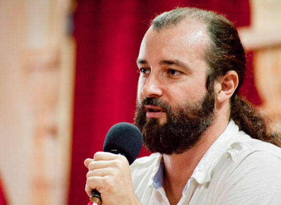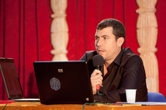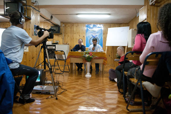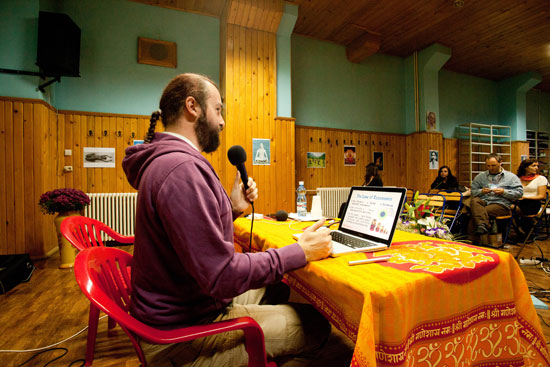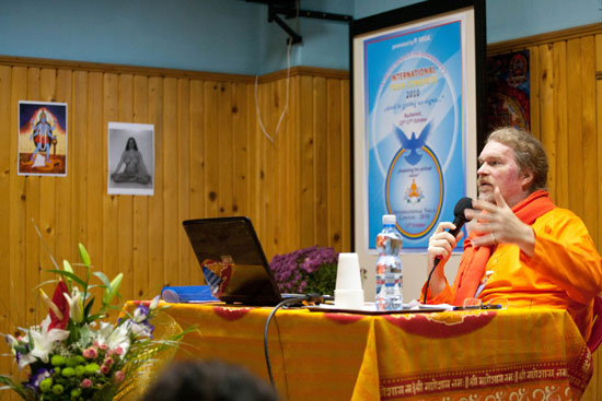 Swami Mahalayananda din Portugalia, la una dintre conferințele susținute.