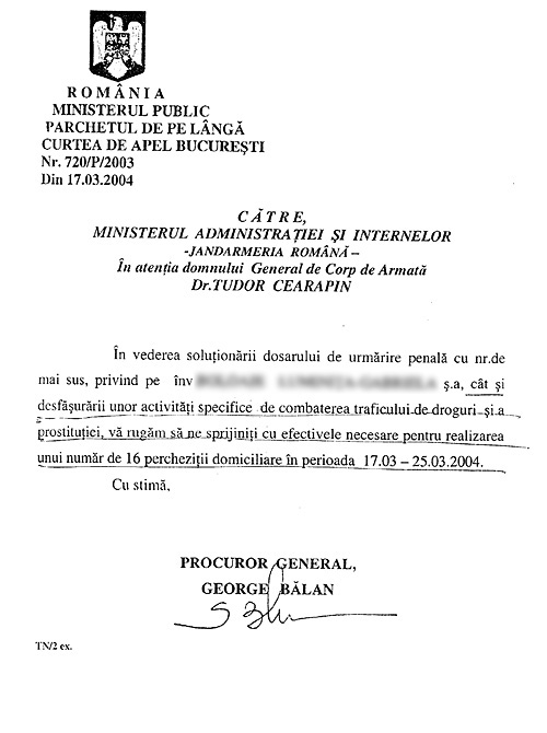 Vă prezentăm în facsimil autorizarea instanţei pentru percheziţiile din martie 2004 efectuate la sediul mai multor imobile în care locuiau yoghini, împreună cu adresa semnată de procurorul George Bălan pe care dânsul a folosit-o pentru a justifica mobilizarea la luptă a trupelor de jandarmi. Concluzia? Mobilizarea „de război” a forţelor Jandarmeriei Române de către procurorul George Bălan împotriva yoghinilor este într-un total dezacord cu autorizaţiile instanţei referitoare la percheziţiile din martie 2004!