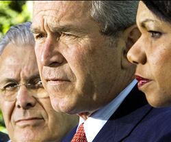Walter Pincus: Hotărâţi cum erau să plece la război împotriva Irakului, conducătorii acestei ţări s-au folosit de orice pretext pentru a face asta. Aşa funcţionează lucrurile de când au venit ei la cârmă. Printre apropiaţii lui George W. Bush, unii consideră că ar avea o parte de responsabilitate în greşeala pe care tatăl său a făcut-o în 1991, când a eşuat în tentativa sa de a-l da jos pe Saddam Hussein. Nu mai conteneau să vorbească despre asta în think tanks-urile lor. După ei, incapacitatea noastră de a soluţiona acest conflict israeliano-arab se datora lipsei noastre de influenţă, fapt care se explica la rândul său prin faptul că palestinienii puteau să conteze pe susţinerea lui Saddam Hussein. De aici sloganul „drumul către Ierusalim trece prin Bagdad”, care era complet absurd: Saddam Hussein era încolţit, iar capacitatea sa de a face rău era foarte limitată. Cea mai mare ironie este aceea că faimoasele arme care le-au servit drept pretext pentru a pleca la luptă nici măcar nu existau.