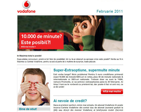 Unul dintre cititorii noştri ne-a trimis pe adresa redacţiei această reclamă pe care a primit-o pe email de la compania de telefonie mobilă  Vodafone.