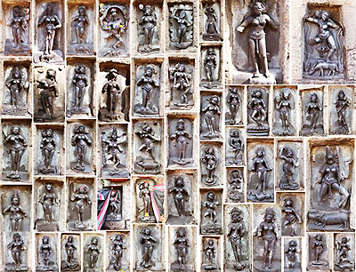 Fiecare statuetă feminină din templele tantrice CHAUNSATH YOGHINI înfăţişează o femeie voluptuoasă, împodobită splendid cu cele şapte tipuri de bijuterii tantrice, brăţări de glezne, de încheieturi, de braţe, coliere, cercei şi diademe.