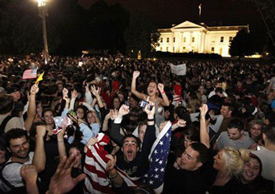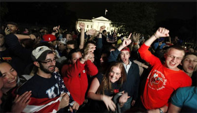 După anunţarea morţii lui Bin Laden, sute de americani s-au adunat în faţa Casei Albe să scandeze: „SUA! SUA!”