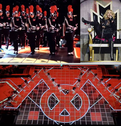 Madona a fost aleasă, de data aceasta, să fie protagonista ritualului satanic ce a deschis campionatul american. Partea cea mai ciudă a acestei „performanţe” este spre final. În momentul în care Madonna a rostit cuvântul „Home”, s-a deschis o trapă, care a înghiţit-o. Razele de lumină din fundal, versurile cântecului (care pregăteau scena finală), fumul care se ridica din „groapa” în care căzuse Madonna, toate acestea ne duc cu gândul la infern şi la Lucifer, îngerul decăzut!