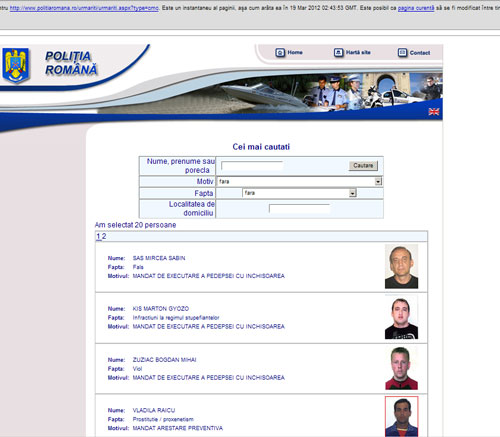 Dovada că Gregorian Bivolaru nu se afla, cu două zile în urmă, pe lista Most Wanted se află în această captură de ecran – cacheul paginii Most Wanted în data de 19 martie. Erau la momentul respectiv numai 20 de persoane pe această listă.
