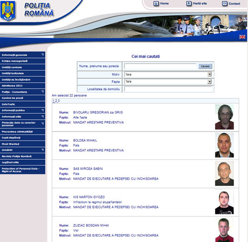 În schimb, în următoarea captură de ecran – realizată astăzi – vedem că sunt 22 de persoane, Gregorian Bivolaru fiind introdus primul pe listă. Fiind vorba de un alt mandat de arestare decât cel menţionat în presă este evident că este vorba de reintroducerea sa recentă pe această listă, la presiunea mass-mediei!