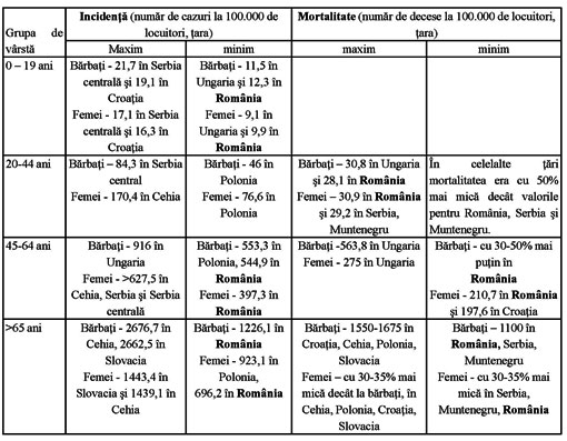 În contextul regional, balcanic, după cum se observă din datele expuse, în ţara noastră atât apariţia de cazuri noi de cancer cât şi numărul de decese prin această boală au, ca o medie pe o perioadă de 20-40 de ani în urmă, valori scăzute comparativ cu ţările din jur.