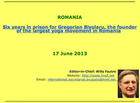 Here is a letter coming from the most important human rights organization on freedom of religion and belief, Human Rights Without Frontiers. This letter comes as a reaction to the 14th of June 2013 sentence of Mr Gregorian Bivolaru at the Supreme Court of Justice in Romania. Being in their attention for a while, Mr Bivolaru’s case raised several doubts about the judicial system of a Romania that is still under the influence of the same groups of power.