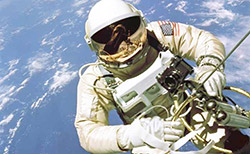Astronautul Ed White, în timpul primei ieşiri individuale în afara modulului spaţial Gemini 4