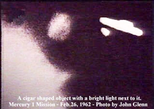 Obiect zburător neidentificat, în formă de ţigară, fotografiat în timpul misiunii spaţiale Mercury 1, de către astronautul american John Glenn, la data de 26.02 1962