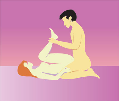 The woman lies on her back, then lifts her knees. With the help of her lover, she brings her knees close to her breasts. While gently caressing her thighs, her lover will enter her yoni which is drunken with pleasure, while alternating profound and superficial penetrations.