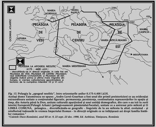 „Înainte de civilizaţiunea gracă şi egipteană, o civilizaţiune mult mai veche se revarsă asupra Europei. Aceasta a fost civilizaţiunea morală şi materială a rasei pelasge şi care a deschis un vast câmp de activitate a genului omenesc. (…) Influenţele acestor trei culturi pelasge au fost decisive, pentru soarta muritorilor de pe acest pământ. (…) Pelasgii au fost adevăraţii fondatori ai stării noastre actuale (…) Pelasgii ne apar după vechile tradiţiuni istorice ca una şi aceeaşi populaţie cu neoliticii, cari introduc în Europa cele dintâi elemente ale civilizaţiunii, animale domestice, cultura cerealelor şi o artă industrială mai progresată.”