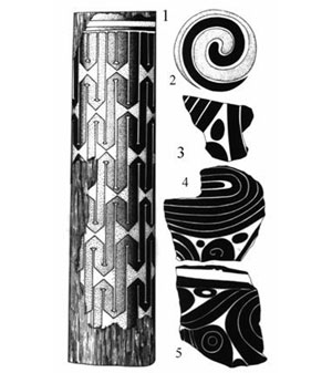 În acea perioadă au fost ridicate temple pe pereții cărora erau pictate forme spiralate și simboluri sacre străvechi, așa cum se poate vedea la templul de la Căscioarele, jud. Călărași, o așezare insulară pe un lac din apropierea Dunării. Pe insula din mijlocul lacului, numită Ostrovelul, au fost descoperite vestigii foarte vechi: un medalion de lut ars pe care era gravată o spirală roșie; o coloană cu înălțimea de doi metri pe care erau gravate 22 de linii verticale paralele, de-a lungul cărora erau șapte rânduri orizontale a câte șapte perechi de triunghiuri.