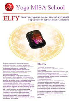 ELFY este un aparat care protejează împotriva radiaţiilor electromagnetice şi combate diferitele lor efecte nocive. Principala lui aplicaţie este de protejare împotriva radiaţiilor telefoanelor mobile, ecranelor TV, calculatoarelor, cuptoarelor cu microunde, liniilor de înaltă tensiune, radioemiţătoarelor. „Prin stabilirea unei legături continue cu câmpul teluric, celulele umane nu mai sunt receptive la radiaţiile nocive,” se explică în posterul de prezentare. Protecţia respectivă se extinde şi în ceea ce priveşte influenţele subtile nocive (cum ar fi gândurile negative proiectate spre subiect, magie neagră etc.). În plus, inventatorii lui ELFY afirmă că utilizarea sistematică a acestui aparat amplifică vitalitatea, creşte potența, fortifică sistemul autoimunitar, creşte rezistenţa la oboseală şi stres, măreşte rezistența la poluarea fonică şi elimină problemele legate de decalajul de fus orar.