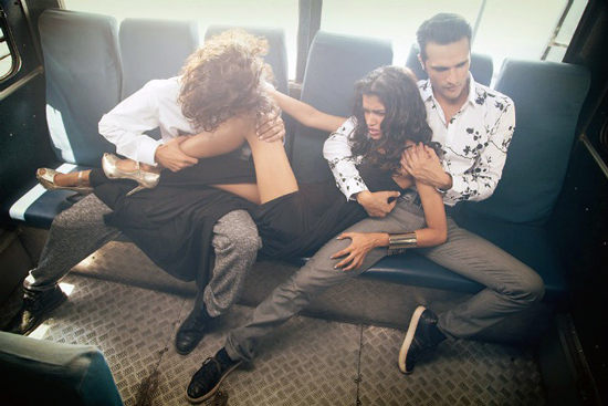 Ne întrebăm retoric: oare editorii revistei Vogue Italia cred că cei care privesc aceste poze sunt impresionaţi de rochiile de firmă?!