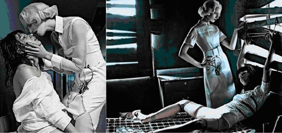 Într-un alt pictorial, cunoscutul top model Naomi Campbell torturează un bărbat, având pe chip o expresie indiferentă.