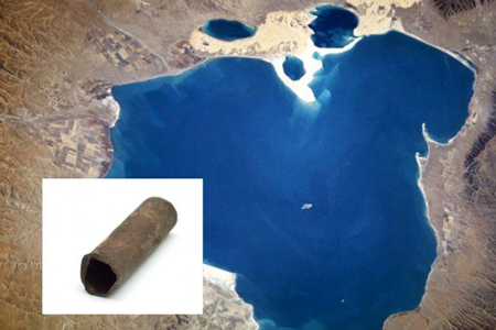 Fotografia de mai sus prezintă una dintre misterioasele ţevi de oţel ce au fost descoperite în apropiere de Lacul Qinghai din China.