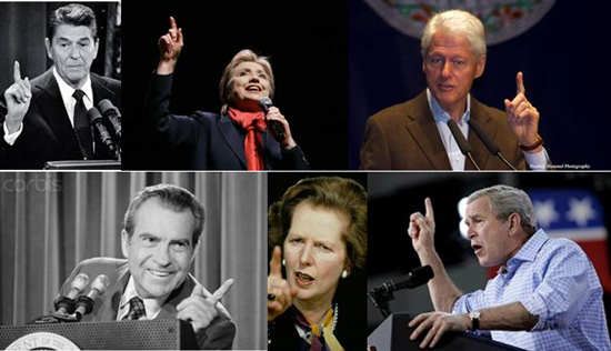 Coincidență? Nu. Motivul pentru care majoritatea politicienilor folosesc aceleași gesturi ale mâinilor este acela că ei au fost instruiți de consilieri cum să își manipuleze audiențele cu ajutorul limbajului trupului, așa cum este de altfel cazul multor lideri politici din întreaga lume.