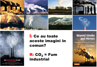 REALITATE: Dioxidul de carbon (CO2) este un gaz incolor, inodor, vital pentru viața pe Pământ. Toate imaginile de mai sus (plus multe, multe altele de același tip) manipulează un adevăr științific elementar folosind o tehnică de tip trompe l’œil: dioxidul de carbon nu poate fi văzut de ochiul uman sau camera de fotografiat.