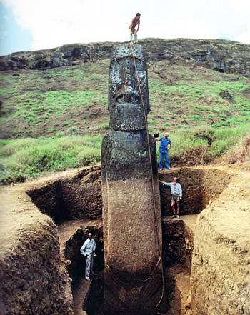 Oamenii de ştiinţă au examinat aproximativ 150 de capete de piatră din zona Rano Raraku. În ultimii ani, câteva dintre capete au fost excavate și s-a descoperit că acestea sunt însoţite şi de corpuri cu o înălţime de 7 metri.