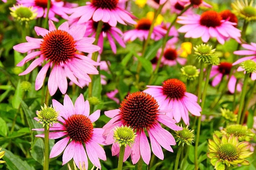 Această plantă conține substanțe care cresc activitatea sistemului imunitar, calmează durerea, reduc inflamațiile și au efect antiviral și antioxidant. Specialiștii în terapii alternative recomandă utilizarea acesteia pentru tratarea infecțiilor tractului urinar, candidozei, infecțiilor urechii, micozei, sinuzitei, rinitei alergice (boala fânului) și pentru vindecarea rănilor. Conform studiilor, extractul de echinaceea luptă activ cu virusul herpetic, cu răceala și gripa, de asemenea neutralizează bacteria Staphylococcus aureus.