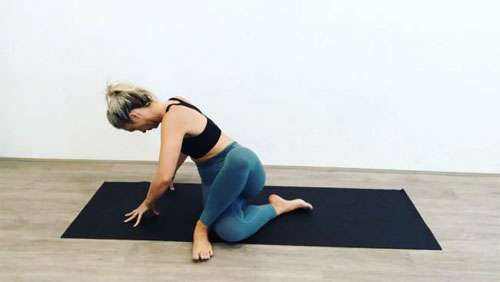• Start to draw navel towards spine to engage core, puff out through the kidneys allowing spine to lengthen in line with sit bones.