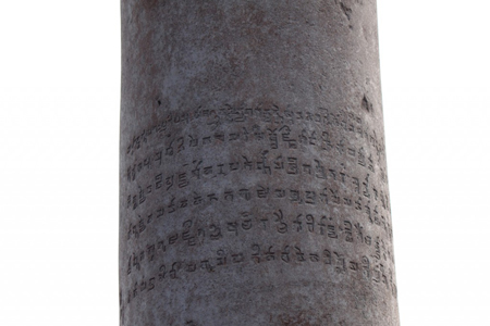 Fotografia alăturată prezintă o inscripție gavată pe pilonul de fier din Delhi. Inscripţia este datată la aproximativ 400 d.Hr., în vremea regelui Chandragupta II.
