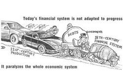 Când un astfel de sistem gigantic se prăbuşeşte, unda de şoc pe care el o poate genera este enormă. De aceea, el trebuie înlocuit imediat cu un sistem financiar nou, pentru ca stabilitatea financiară mondială să fie menţinută. Vechiul sistem se află acum în ultima fază a existenţei sale, înainte de colapsul total. Noul sistem este pregătit, gata să fie implementat îndată ce primul va sucomba. Acest sistem vine cu idei noi, cu o concepţie nouă de tranzacţionare, cu noi standarde de evaluare şi mai ales va beneficia de un personal de administrare în întregime nou, pentru că a folosi în cadrul lui aceiași șefi și angajați care au produs dezastrul anterior, ar fi echivalent cu o sinucidere. Probabil că la început, printre oameni va exista o anumită stare de confuzie, absolut firească atunci când noul înlocuieşte ceea ce este vechi, mai ales la o asemenea anvergură. Totuşi, este important să reţinem faptul că lumea nu va cădea într-o stare de haos şi de anarhie, deoarece toate elementele noi care trebuie să intre în joc sunt deja pregătite. Este adevărat că un nou sistem financiar nu este scutit de tentație, de corupție sau de revenirea gradată la aceleași practici subversive de până acum, însă avem cel puțin șansa de a începe o cale nouă și mai ales ne bazăm pe evoluția conștiinței oamenilor. De asemenea, o serie întreagă de mecanisme de prevenire a vechilor metode financiare corupte sunt menite să asigure un echilibru decent al tranzacțiilor si al schimburilor economice.
