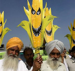 Militanta ecologistă Vandana Shiva a monitorizat ceea ce se petrece în aceste aşezări agricole. Ea a constatat că preţul per kilogram al seminţelor de bumbac a fost ridicat de compania Monsanto de la 7 la 17.000 rupii. Compania Monsanto îşi vinde seminţele OMG făcând afirmaţii mincinoase că producţia la aceste plante modificate genetic se ridică la 1.500 kg pe an, când recoltele fermierilor ajung abia la 300-400 kg/an, în medie. Vandana Shiva şi mulţi alţi analişti au ajuns la concluzia că gigantica firmă Monsanto a avut un impact oribil asupra Indiei şi că politicile orientate exclusiv către profit şi către distrugerea micilor agricultori, ale celor care reprezintă interesele monstruoase ale firmei Monsanto au condus la „o economie suicidară“ în India.