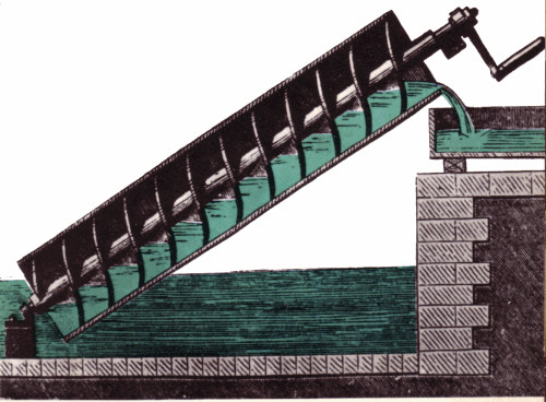 Tehnologia există și astăzi, fiind operată cu ajutorul motoarelor. Pe măsură ce șurubul începe să se răsucească, capătul inferior al dispozitivului ridică apa. Apoi, apa este împinsă spre vârful șurubului cu ajutorul elicoidului, până când iese prin capătul superior al dispozitivului.