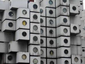 - Turnul de Capsule Nakagin a fost o clădire emblematică ce își respecta numele. A fost construită în anul 1972, iar camerele din această clădire, numite „apartamente capsulă”, aveau doar 8-9 metri pătrați și sunt individuale, astfel încât ar putea fi înlocuite precum piesele de lego. Clădirea a fost demolată în anul 2022. Din cauza prețului ridicat al proprietăților imobiliare din capitala japoneză, micro-apartamentele capsulă au devenit foarte răspândite.