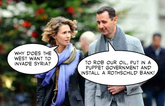 1. Syria’s Central Bank is state-owned and controlled. In other words, it manages its national currency so that it serves the Syrian people and not the Rothschild-controlled global bankers operating from their New York, London, Frankfurt, Tel Aviv, Basel and Paris hideouts.
