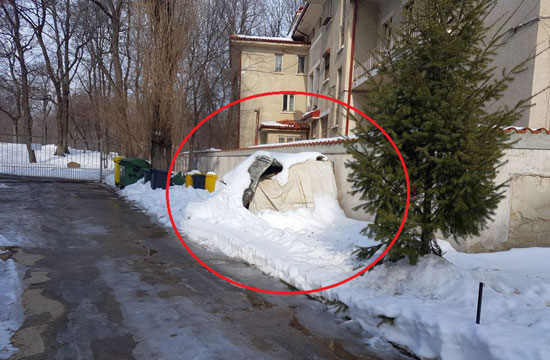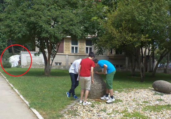 1. Mormanul sub care este adăpostit mamutul radioactiv și care este sprijinit de gardul Institutului de Istorie „Nicolae Iorga”.