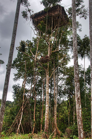 Membrii tribului trăiesc în case construite în copaci, la înălțimi între 6 și 12 metri, dar unele sunt și la 35 de metri deasupra solului. Aceste case din copaci protejează familiile nu numai împotriva roiurilor de țânțari de dedesubt dar, potrivit credințelor acestora, împiedică și spiritele rele să ajungă la ei. Potrivit tradiției locale, în fiecare noapte spirite malefice cutreieră pământul în căutarea de suflete pure. Singura modalitate de a nu fi posedat de un astfel de spirit rău este ca oamenii să se urce cât mai sus în copaci.