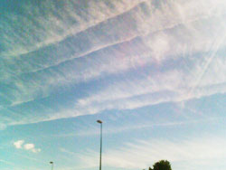 Dezvăluirile incendiare care s-au făcut în ultima vreme despre chemtrails (aşa-zisele „dâre ale morţii” pe care le lasă în urma lor unele avioane) nu au reuşit să oprească acţiunile criminale ale celor care se folosesc de orice mijloace, oricât de abjecte, pentru a reduce populaţia globului la 1 miliard de oameni. Pentru aceasta, printre alte metode criminale de intoxicare, otrăvire şi îmbolnăvire a oamenilor, sunt răspândite pe cale artificială, de exemplu prin pulverizare din avioane, substanţe toxice, virusuri şi germeni patogeni. Am primit de la un cititor al site-ului yogaesoteric din Bristol, Anglia, nişte fotografii extrem de elocvente ale unor chemtrails-uri apărute recent în zona respectivă.