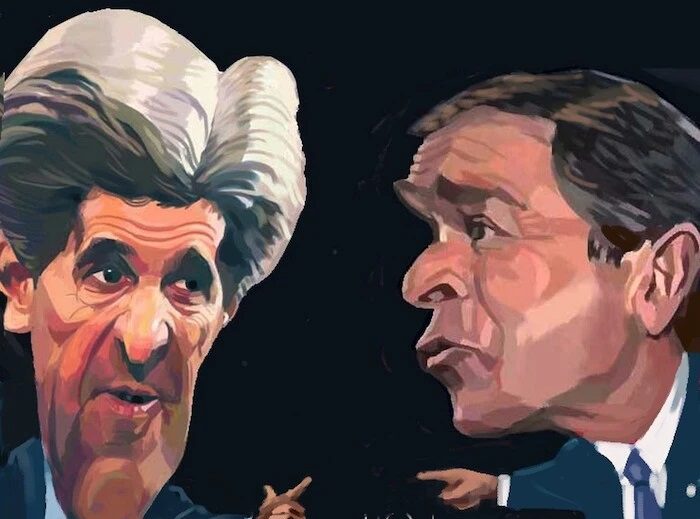Mai precis, într-o primă fază l-a întrebat pe Kerry care-i motivul pentru care Bush nu e condamnat în condiţiile în care a pornit războiul din Irak bazându-se pe o minciună? Ei bine, la modul halucinant, Kerry îi răspunde că asta nu s-a petrecut deoarece Bush nu a fost inculpat nicăieri, aşadar „fapta nu există”. V-am spus doar că e nulitate, ce anume altceva mai hilar putea să scoată pe gură un prostovan? Treaba însă nu se termină aici, deoarece începe un dialog de-a dreptul halucinant: